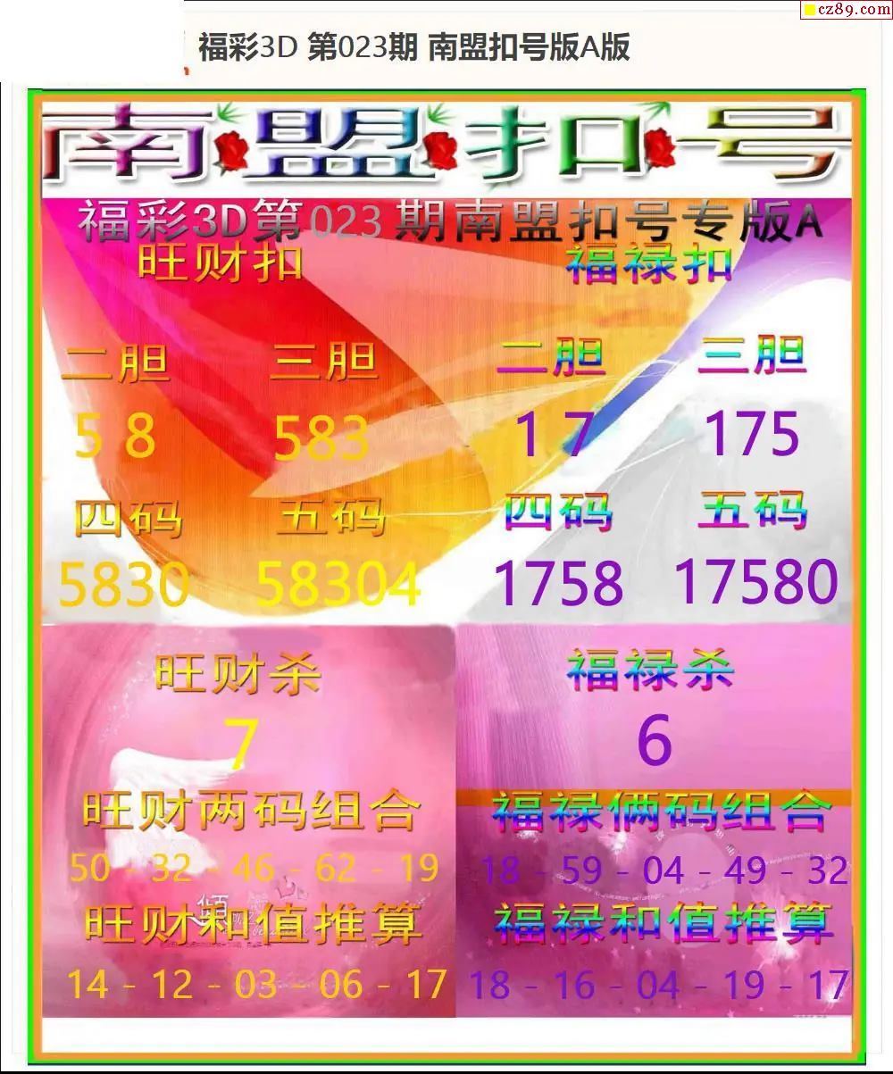 福彩3D2026023期南盟麦穗AB版+南盟扣号AB版