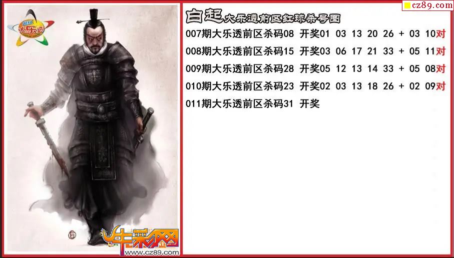 大乐透011期白起前区杀号图