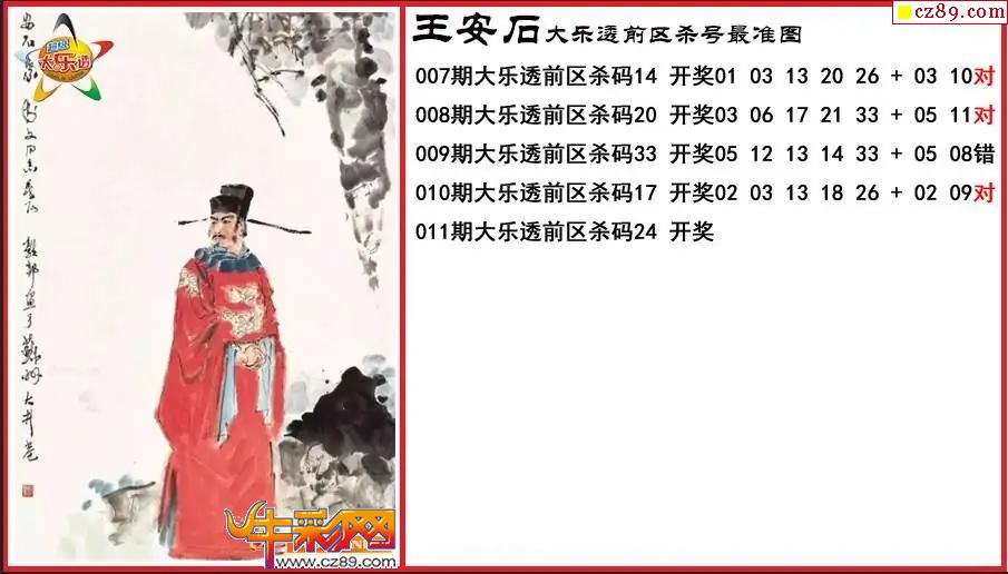 > 大乐透011期王安石前区杀号最准图