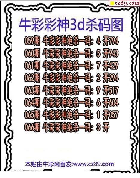 > 牛彩彩神杀码2026066期3d图谜(原创)
